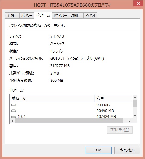 ●160GBのパーティション状態(ソフトでイメージから復元)