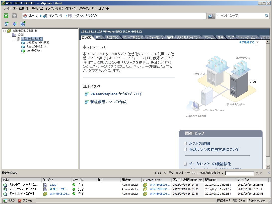 →ESXi5.0 vCenter っぽいのはあったけど有償画面に飛ばされて。。。