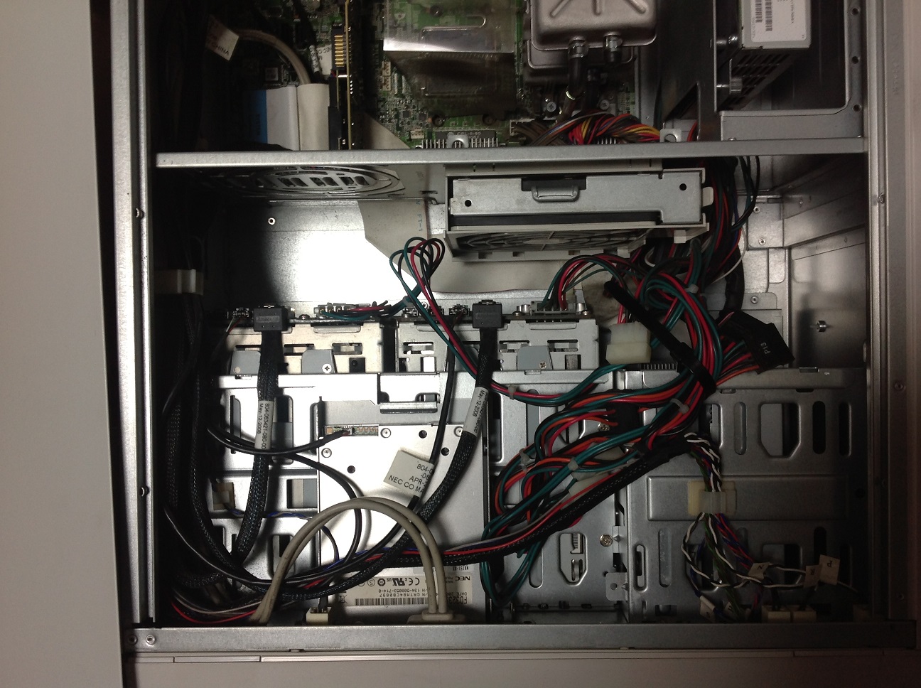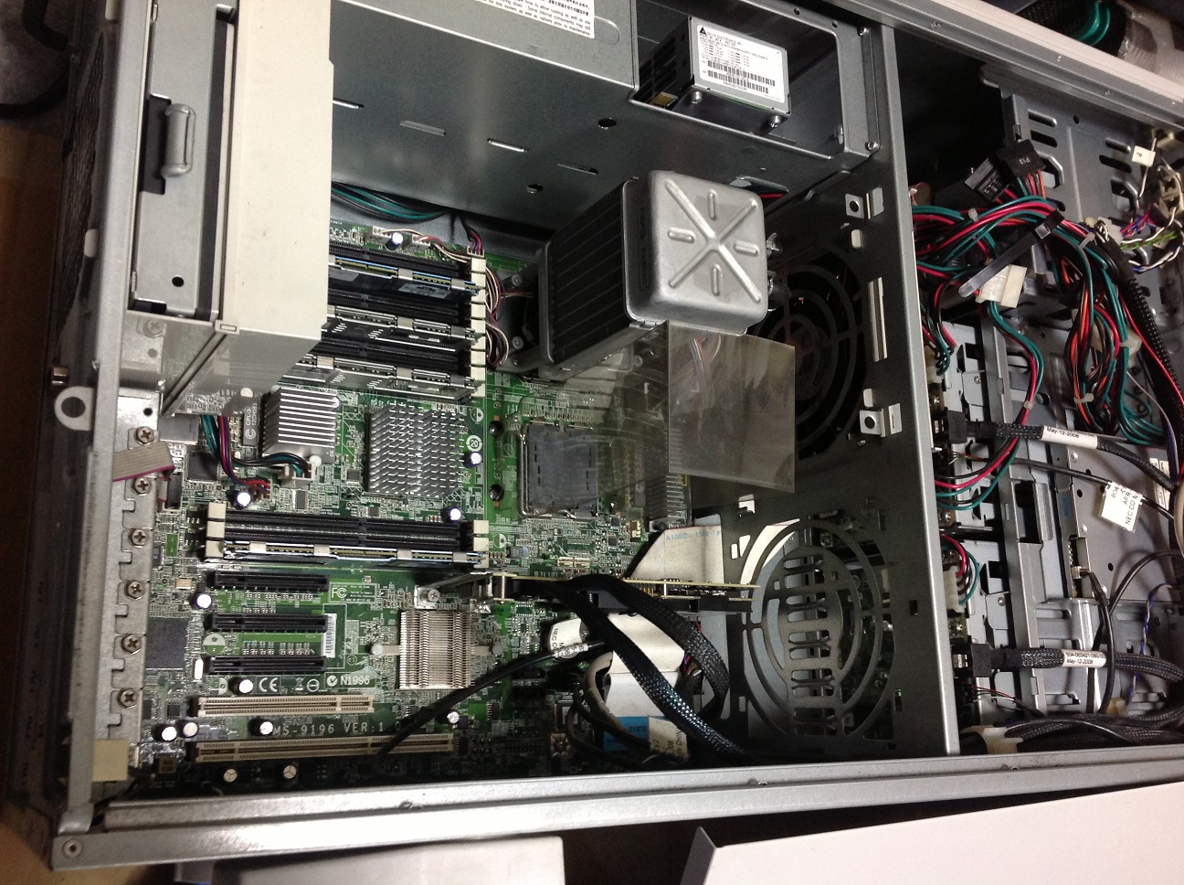 3.5インチのSASが8台実装できる増設ベイがついていてラッキーでした。内部の写真も撮ったのでつづきにあいつものアップします。