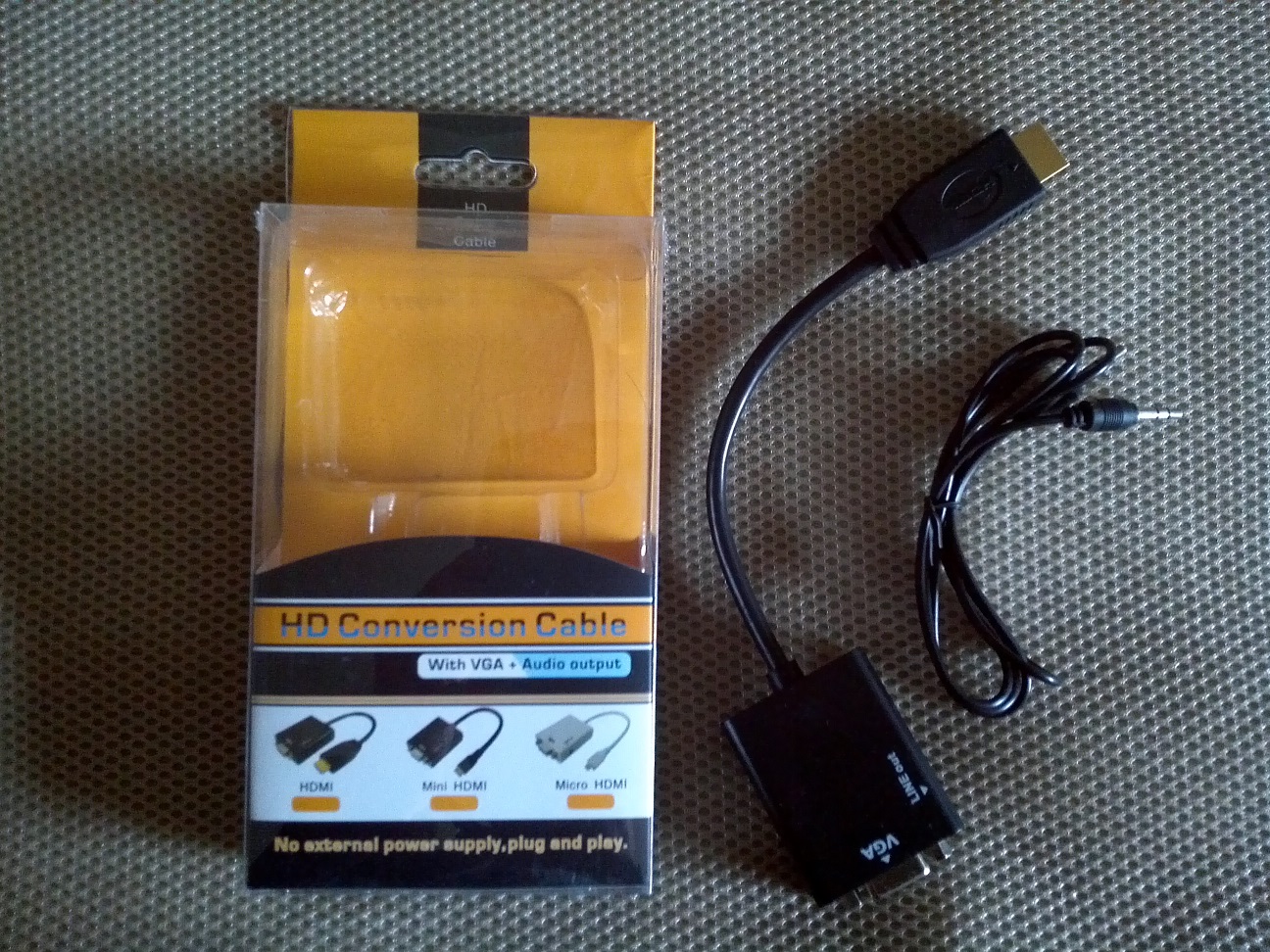 先日、スティック型のデュアルコアCPU/クアッドコアGPU搭載(A9 RK3066)を買った記事で、”HDMI to VGA adapter”てのを購入(手配中)と載せてますが早速届いたのでw
