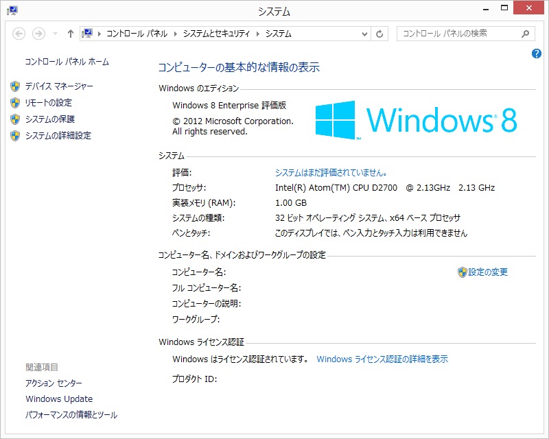 Windows8 Enterprise(x86) 90日間評価版は、案外普通にインストールOK。