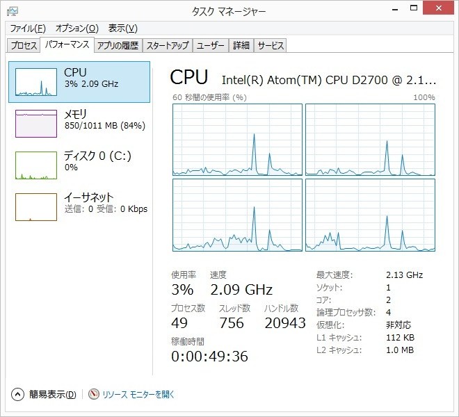 ●タスクマネージャCPU画面↓