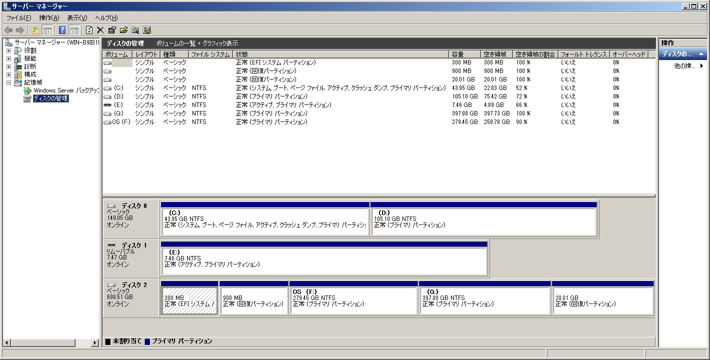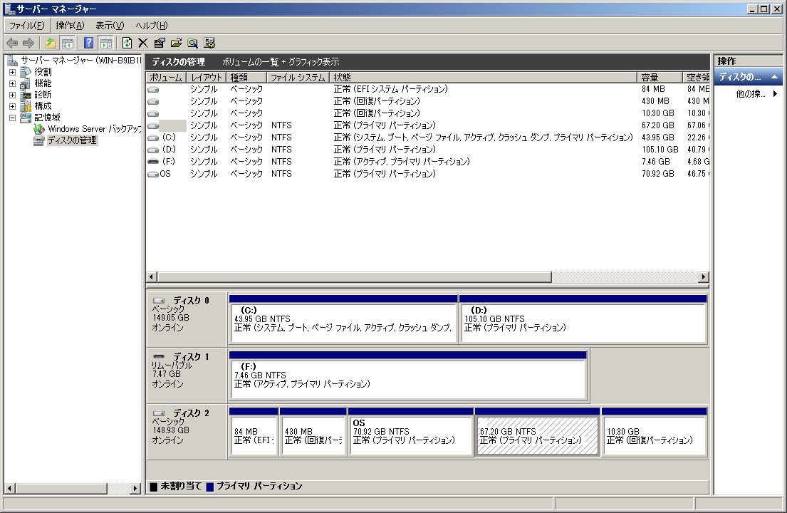 ●160GBのパーティション状態(ソフトでイメージから復元)
