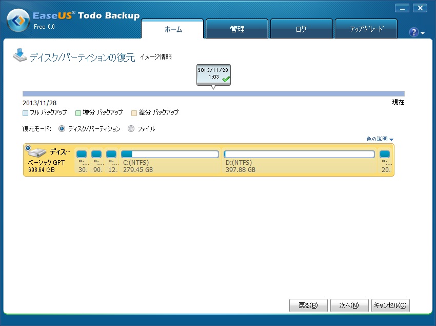 「EaseUS Todo Backup Free」 2)物理フォーマットがきいたのかも(使用ソフト:
