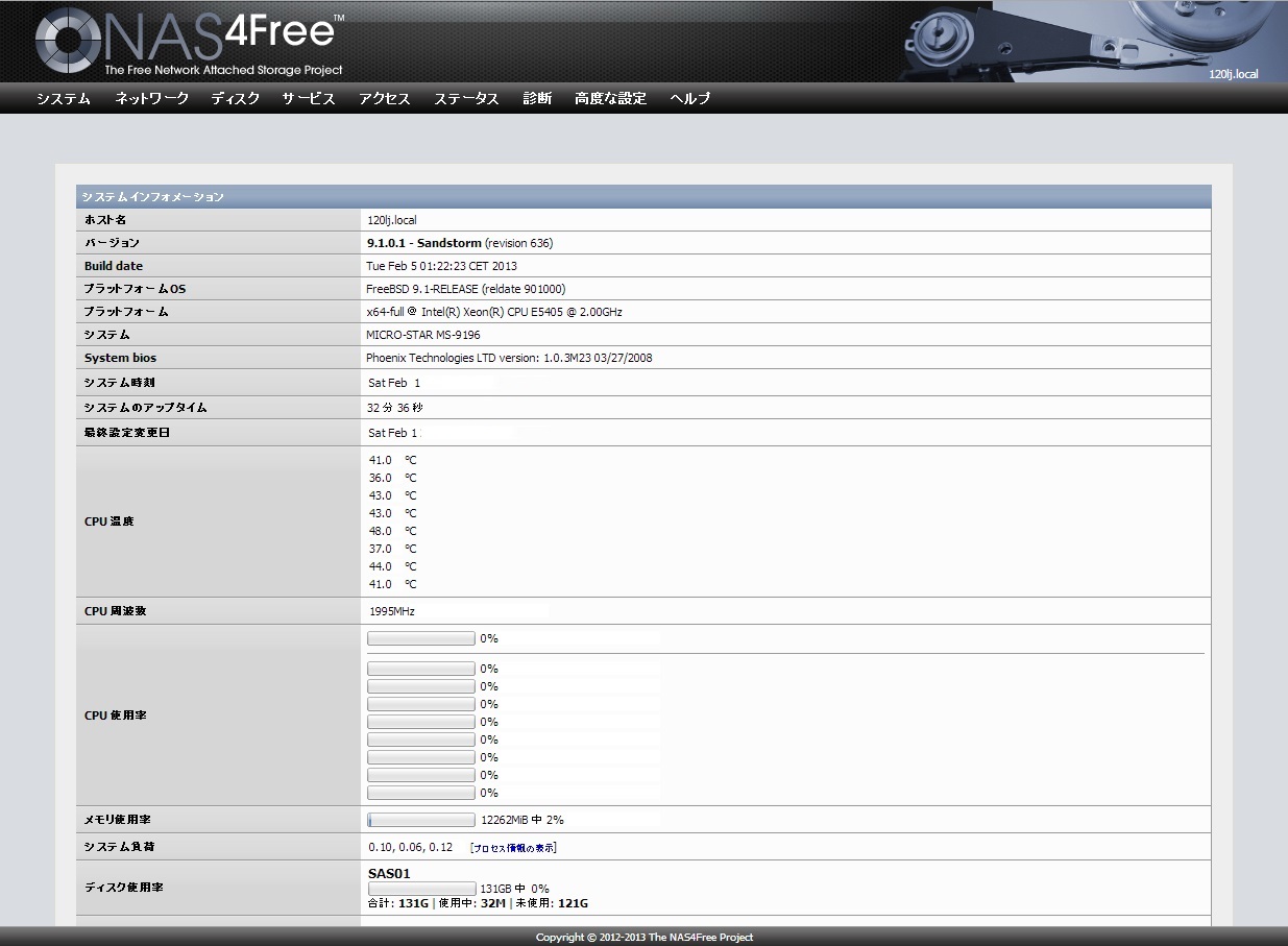 ESXi5.5→NAS4Freeにしてみました。USBメモリ交換して使えるから便利ですよね。