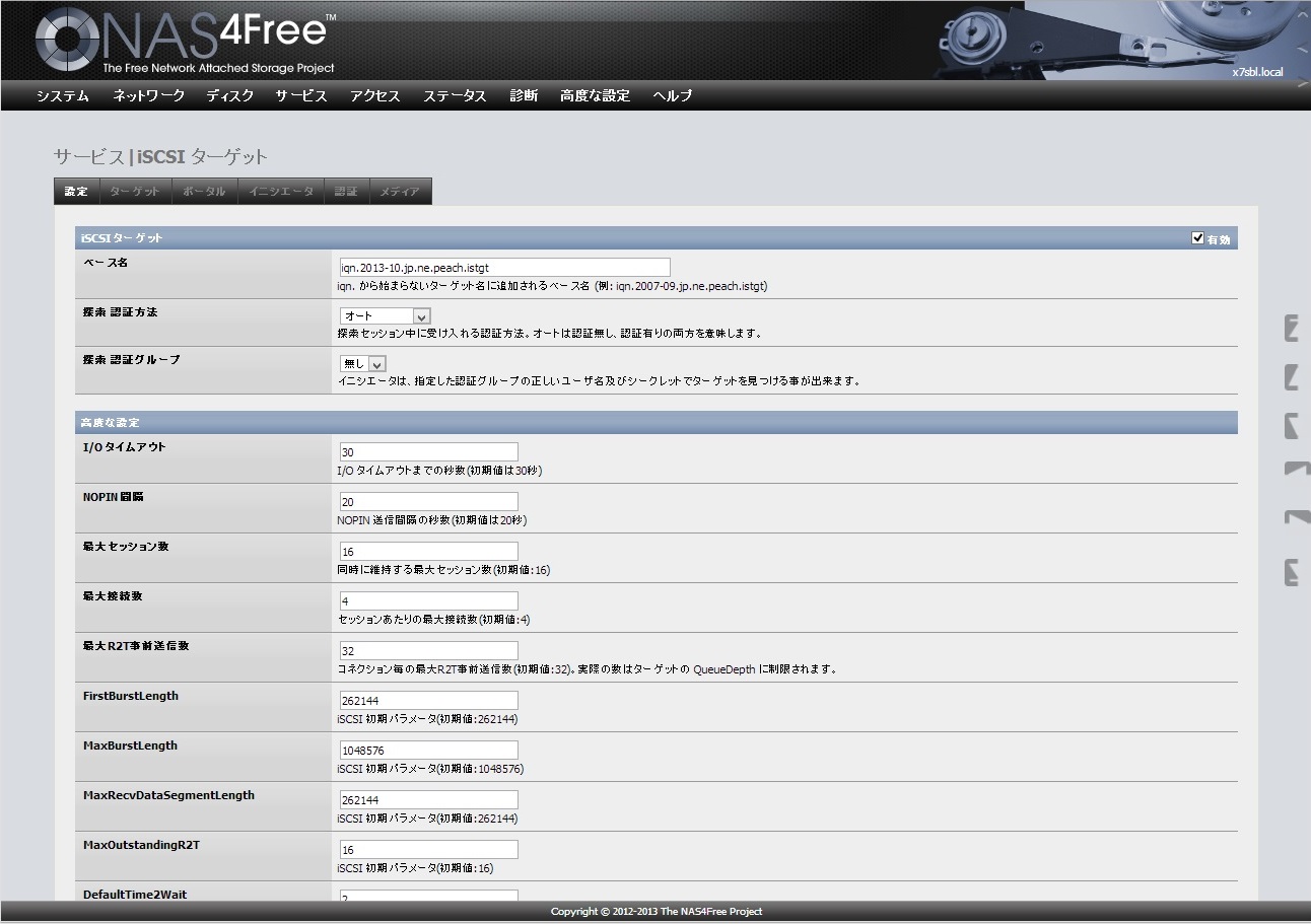 http://kinoshitatadashi.com/nas4free/index.php?09.iSCSIターゲット●ターゲットの有効化