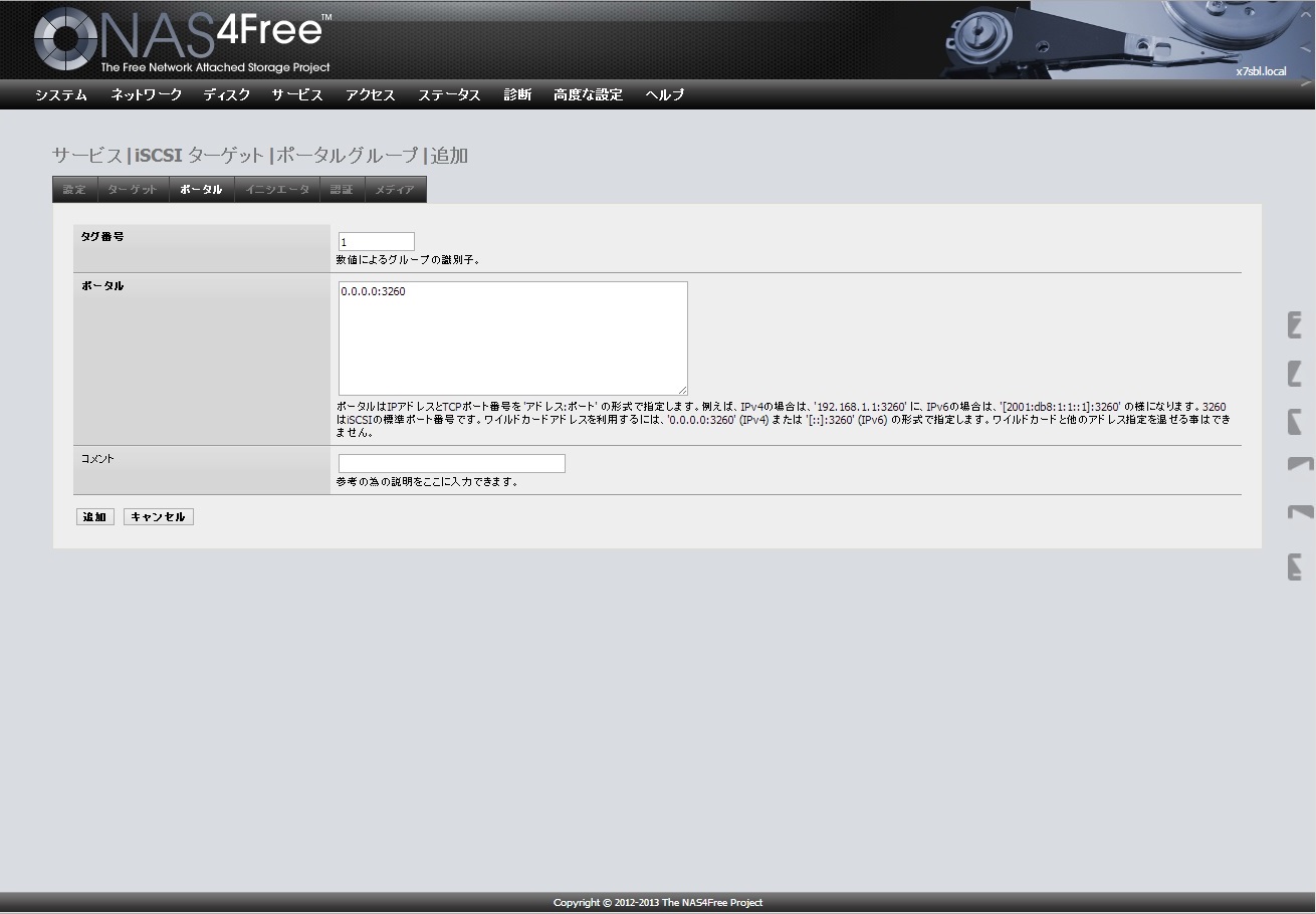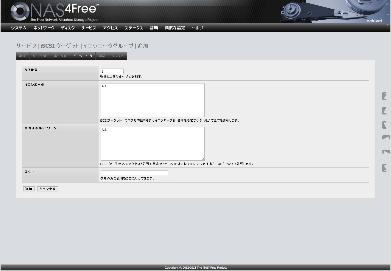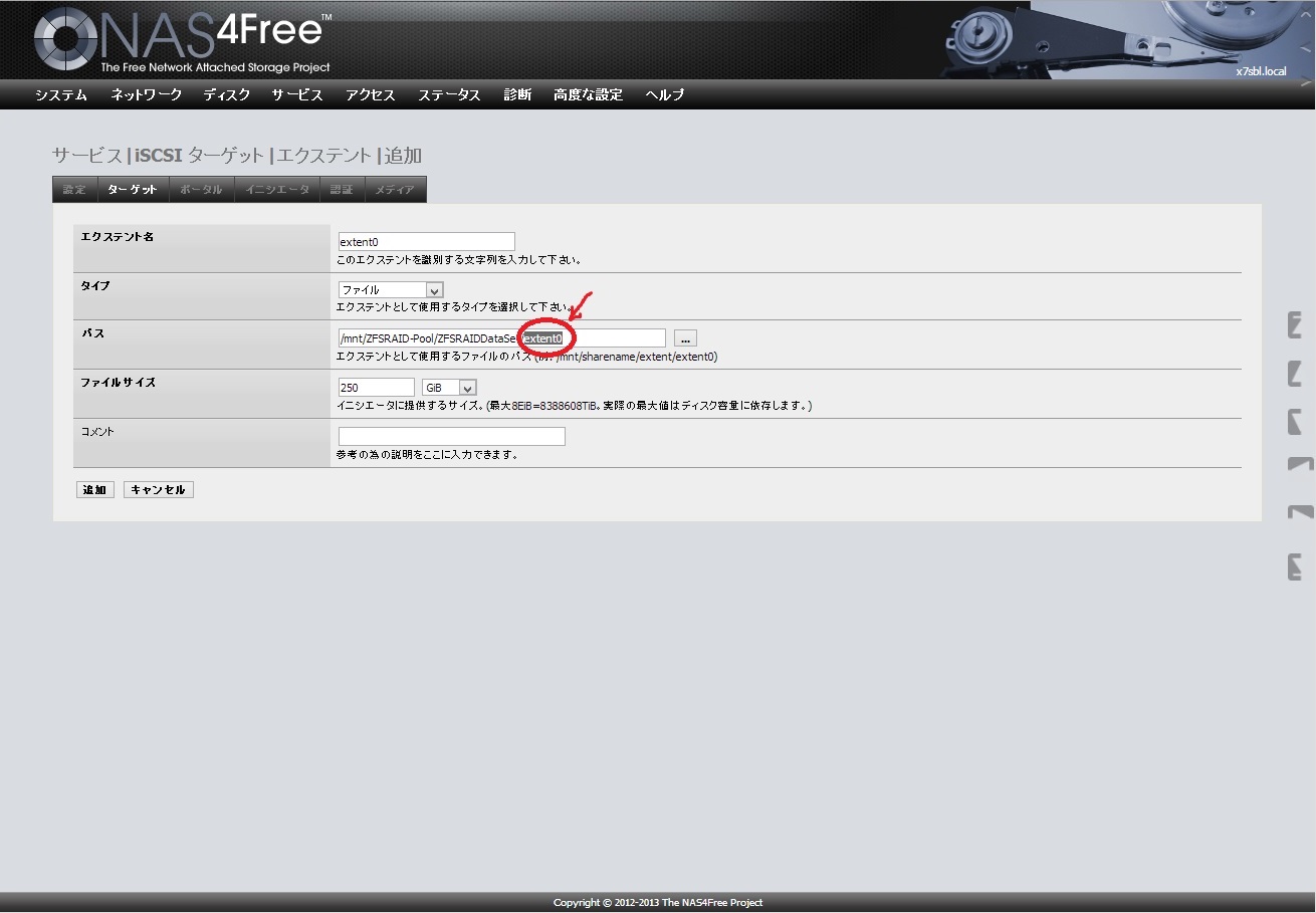 NAS4FreeのiSCSIターゲット設定はこちらを参考にしました