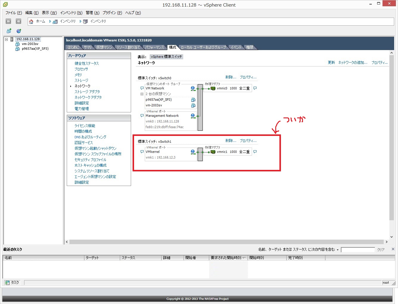 あ、NAS4Free側のNIC2設定キャプチャ撮るの忘れてた。