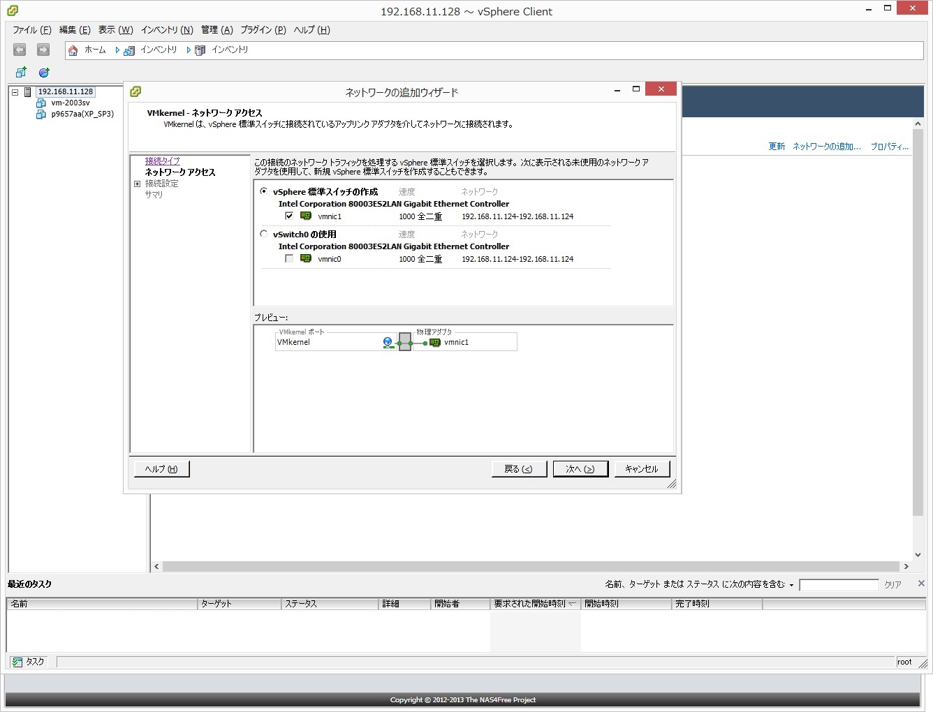 ●動的検出でターゲット(NAS4FreeのNIC2)を割当て