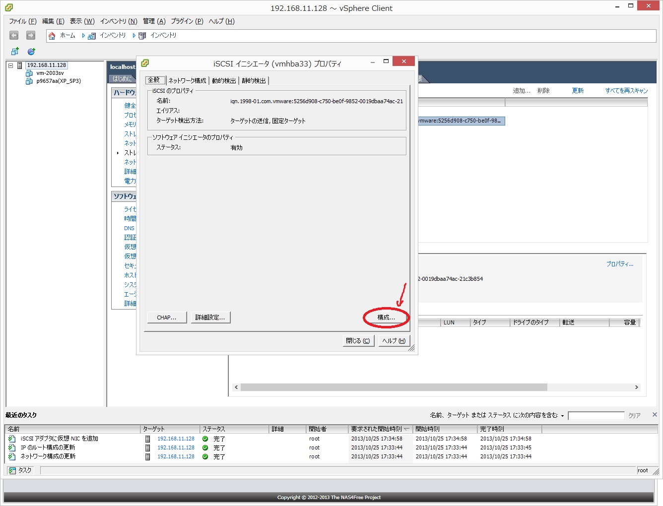 ●もうiSCSIがあったのでプロパティから設定