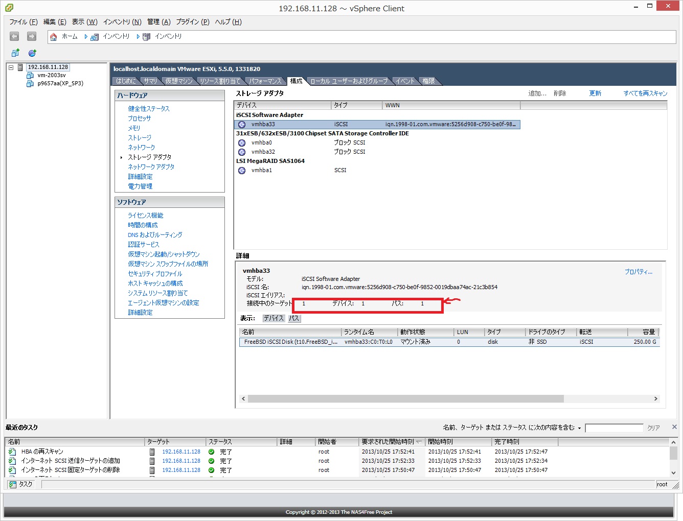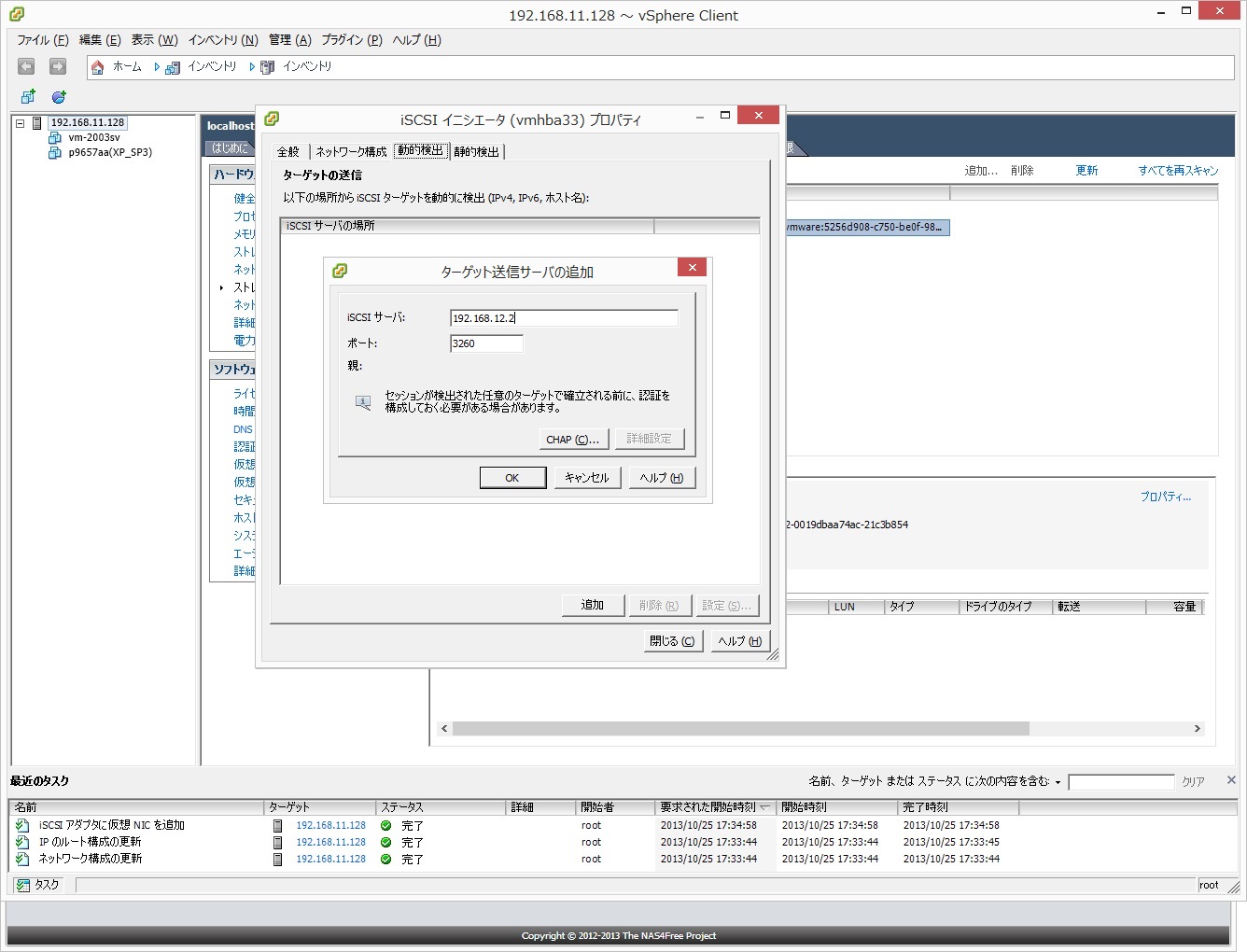 ESXiのiSCSIターゲット追加方法はこちらを参考にしました