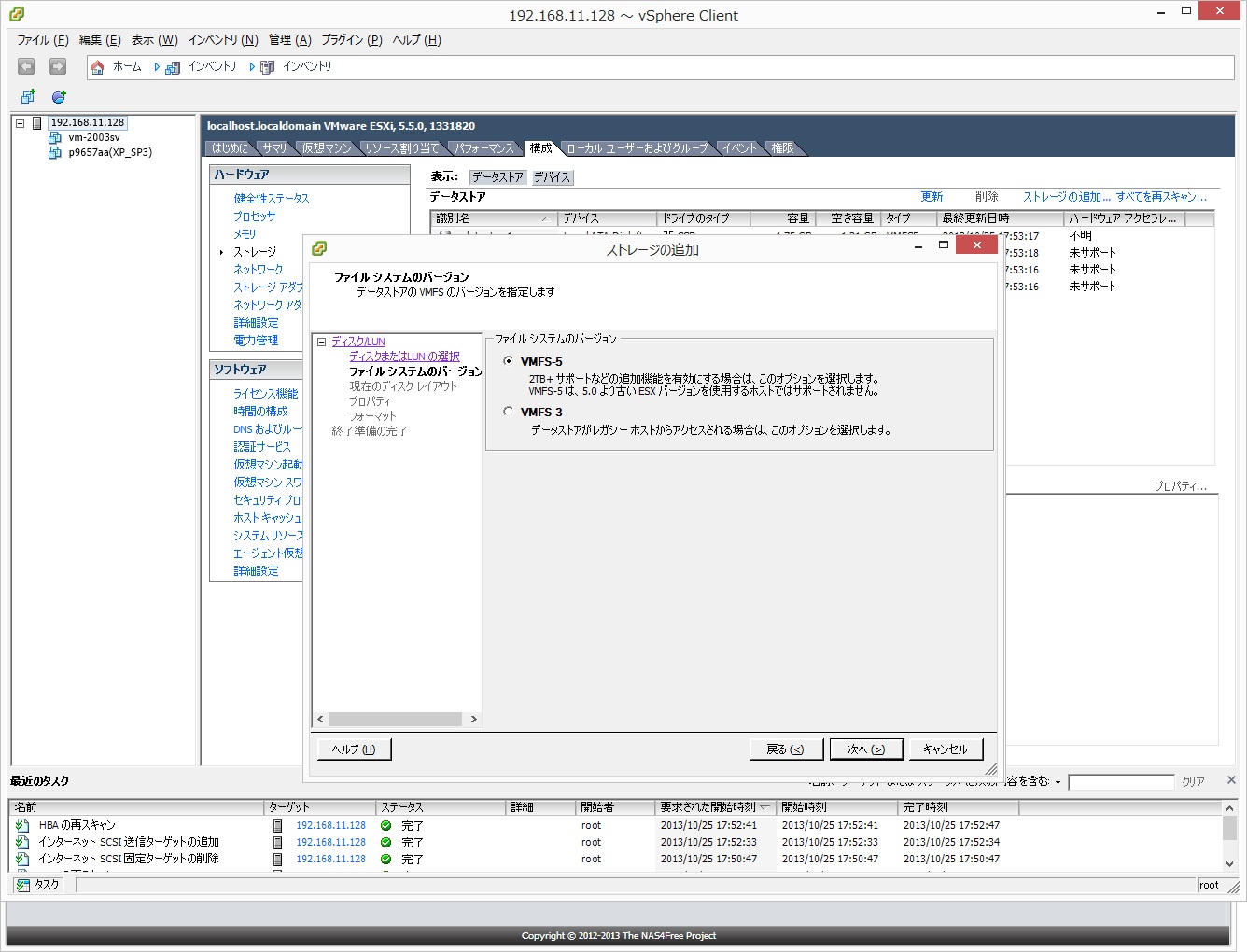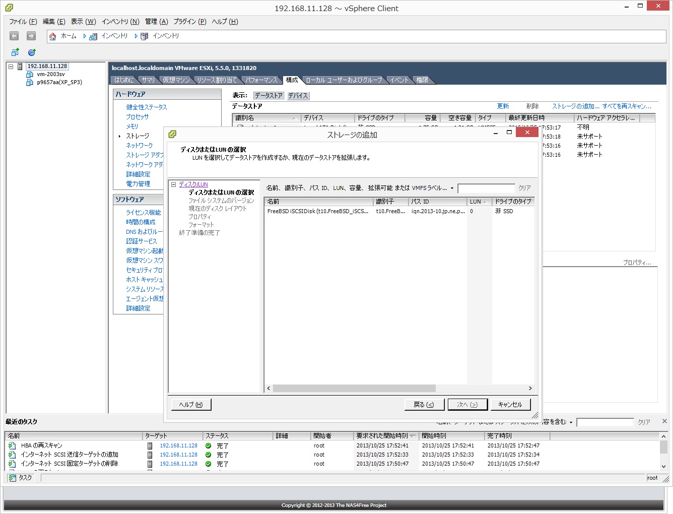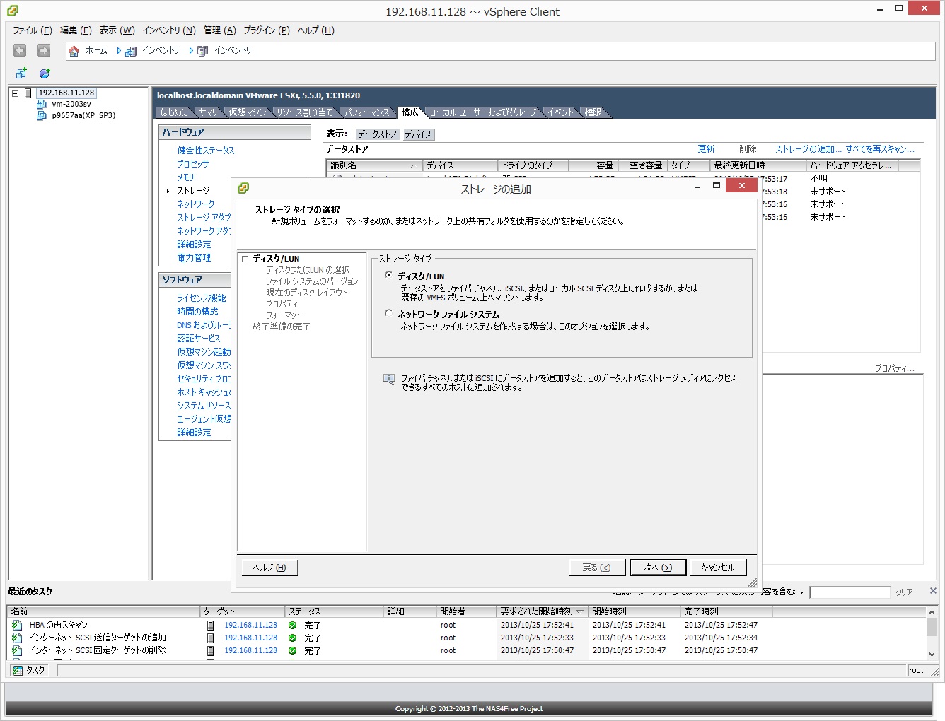 ●続いてストレージ追加でディスク/LUMを選択